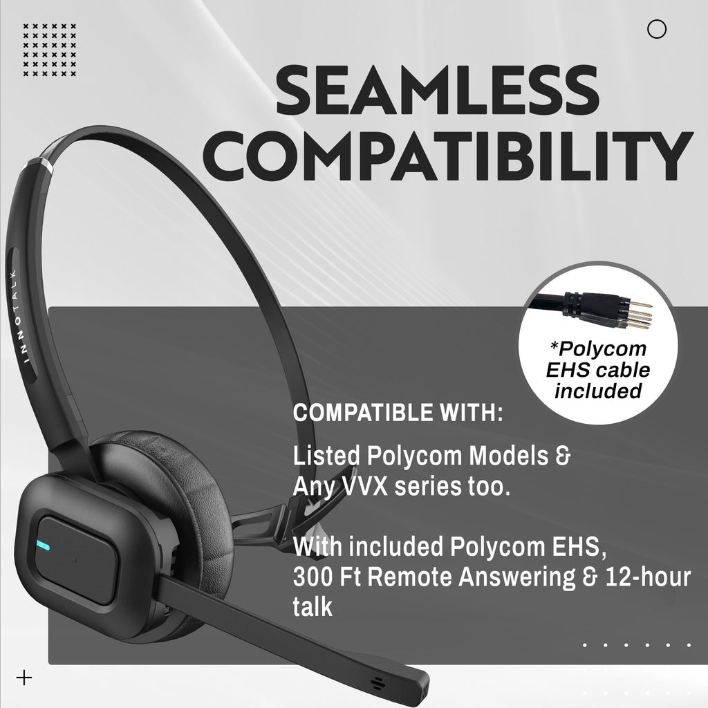 • DON'T COMPARE This Upgrade Wireless Headset Compatible with Polycom with General DECT/Bluetooth Headsets. Compete with Plantronics, Jabra High-Grade Durable Wireless Headsets. 2 Year Warranty, 20 Year Proven Quality in The World